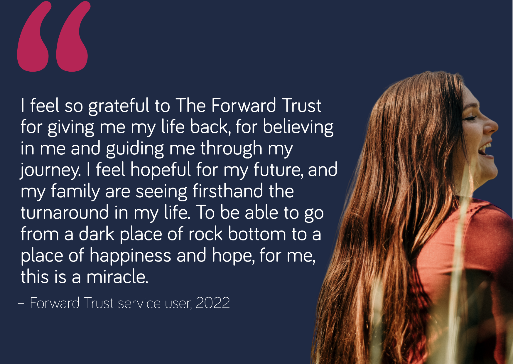 Thanks to the generosity of people like you, we’re able to provide support to more people who need it. Whether it’s help and advice to keep someone’s recovery on track, a place at one of our residential rehabs, support for families, a new job or a safe home.